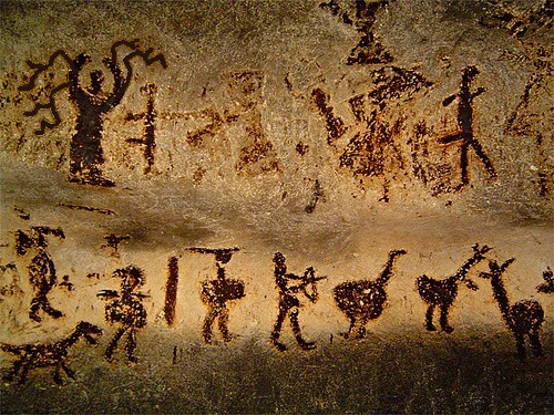 La primera referencia argumenta que la leyenda está en las pinturas rupestres halladas en la Serr da Capivara Parque Nacional del Nordeste de Brasil, que se cree que datan de fecha tan lejana como 9000 a.c.; Estas pinturas muestran un carácter extrañamente alargada que lleva a un niño de la mano, pero no hacen referencia a los apéndices extra.